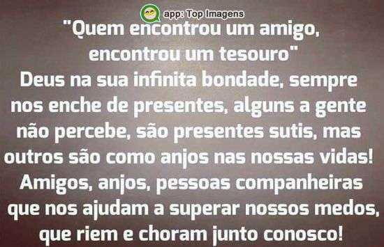 " Quem encontrou um amigo, encontrou um tesouro"