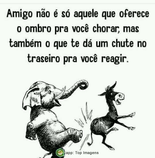 Amigo não é só aquele que oferece o ombro pra você chorar, mas também o que te dá um chute no traseiro pra você reagir.