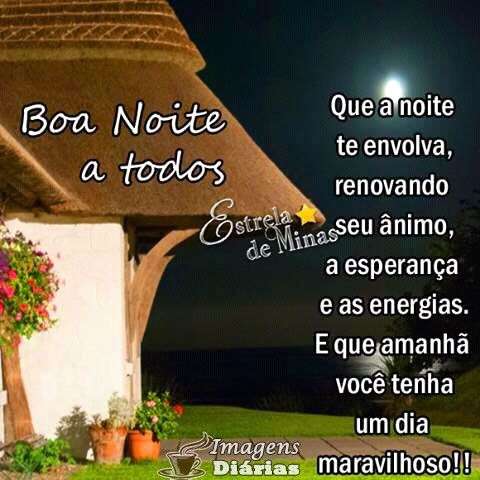 Que a noite te evolva, renovando seu ânimo a esperança e as energias. E que amanhã você tenha um dia maravilhoso!