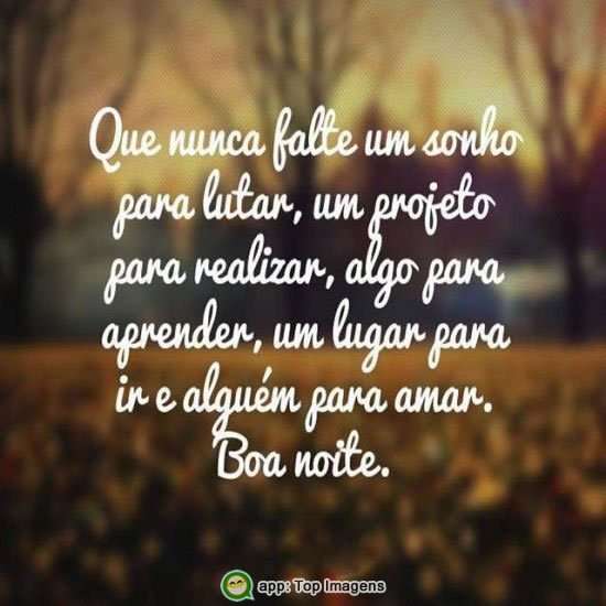 Que nunca falte um sonho para lutar, por um projeto para realizar, algo para aprender, um lugar para ir a alguém para amar. Boa noite.