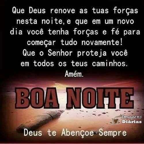 Que Deus renove as tuas forças nesta noite, e que em um novo dia você tenha forças e fé para começar tudo novamente!