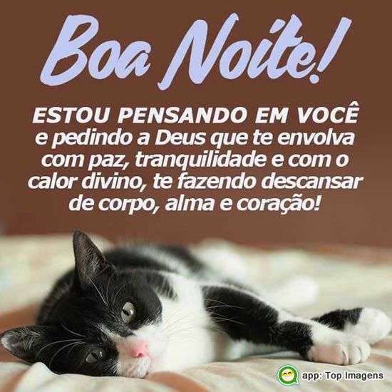 Estou pensando em você e pedindo a Deus que te envolva com paz, tranquilidade e com o calor divino, te fazendo descansar de corpo, alma e coração!