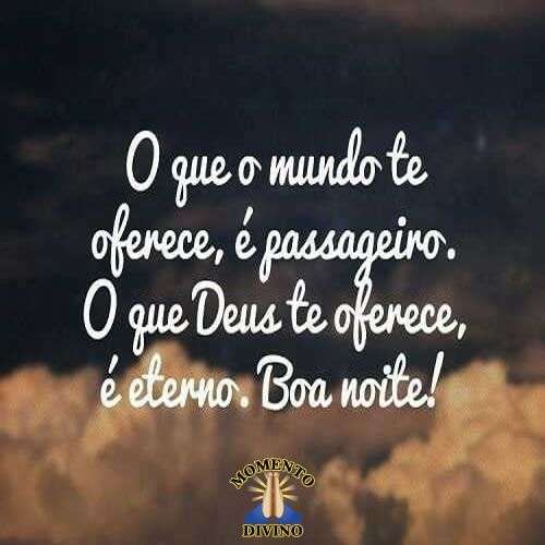 O que o mundo te oferece, e passageiro. O que Deus te oferece, é eterno. Boa tarde!
