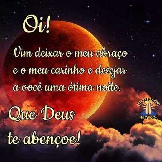 Vim deixar o meu abraço e o meu carinho e desejar a você uma ótima noite.