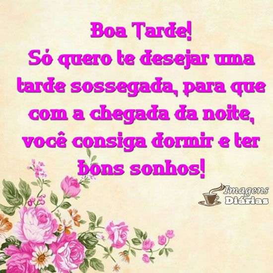 Só quero te desejar uma tarde sossegada, para que com a chegada da noite, você consiga dormir e ter bons sonhos!