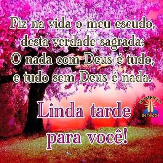 Fiz na vida o meu escudo, desta verdade sagrada: O nada com Deus é tudo, e tudo sem Deus é nada.