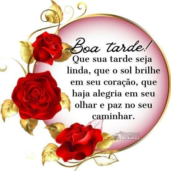Que sua tarde seja linda, que o sol brilhe em seu coração, que haja alegria em seu olhar e paz no seu caminhar.
