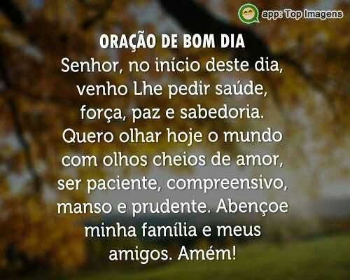 Senhor, no início deste dia, venho lhe pedir saúde, força, paz e sabedoria.