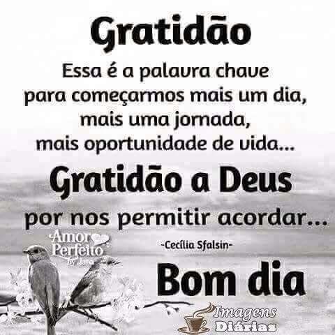 Essa é a palavra chave para começarmos mais um dia, mais uma jornada, mais oportunidade de vida... Gratidão a Deus por nos permitir acordar...