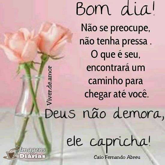 Não se preocupe, não tenha pressa . O que é seu, encontrará um caminho para chegar até você. Deus não demora, ele capricha!