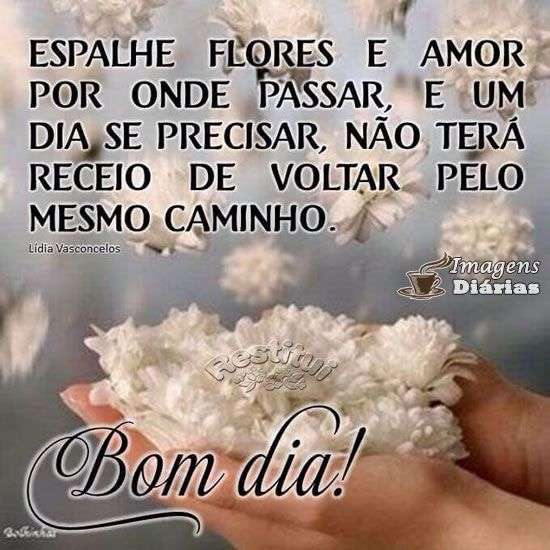 Espalhe flores e amor por onde passar, e um dia se precisar, não terá receio de voltar pelo mesmo caminho. Bom dia!