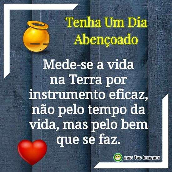 Mede-se a vida na terra por instrumento eficaz, não pelo tempo da vida, mas pelo bem que se faz.
