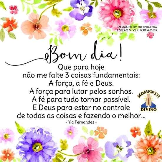 Que para hoje não me falte 3 coisas fundamentais: a força, a fé e Deus.