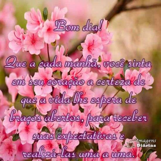 Que a cada manhã, você sinta em seu coração a certeza de que a vida lhe espera de braços abertos, para receber suas expectativas e realizá-las uma a uma.