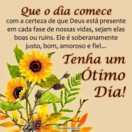 Que o dia comece com a certeza de que Deus está presente em cada fase de nossas vidas, sejam elas boas ou ruins.