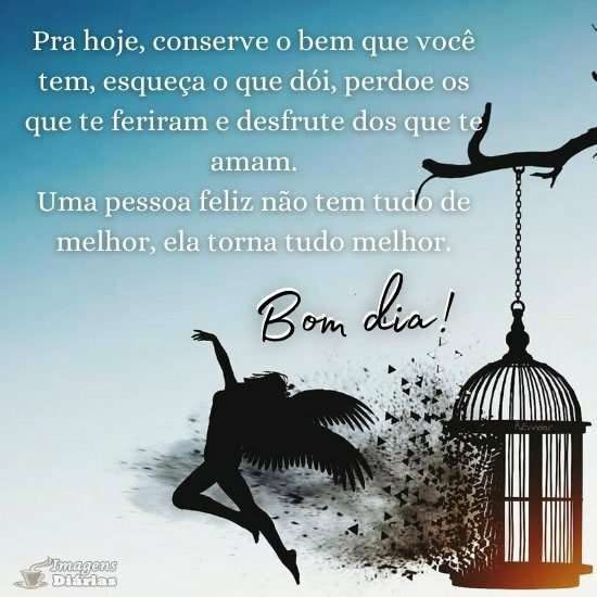Pra hoje, conserve o bem que você tem, esqueça o que dói, perdoe os que te feriram e desfrute dos que te amam.