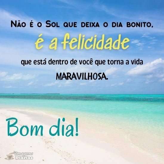 Não é o Sol que deixa o dia bonito, é a felicidade que está dentro de você que torna a vida maravilhosa.