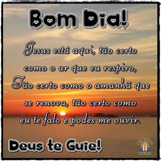 Jesus está aqui, tão certo como o ar que eu respiro, tão certo como o amanhã que se renova, tão certo como eu te falo e podes me ouvir. Deus te guie!
