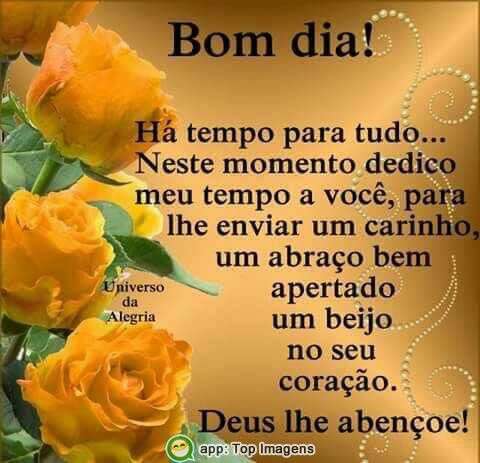 Há tempo para tudo... Neste momento dedico meu tempo a você, para lhe enviar um carinho, um abraço bem apertado um beijo no seu coração. Deus lhe abençoe!