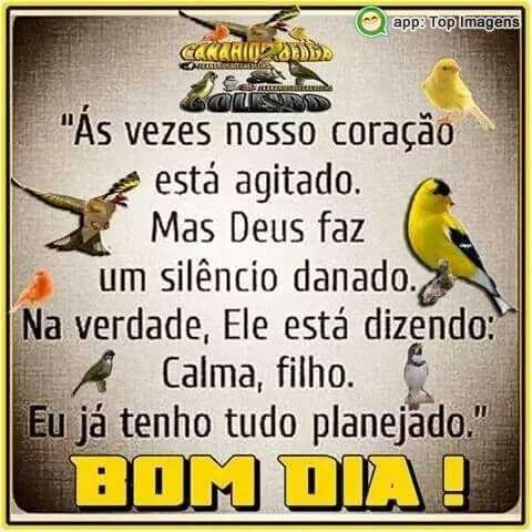 "Ás vezes nosso coração está agitado. Mas Deus faz um silêncio danado. Na verdade, Ele está dizendo: Calma, filho. Eu já tenho tudo planejado."