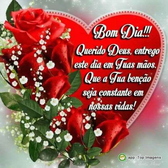 Querido Deus entrego esse dia em tuas mãos. Que a tua benção seja constante em nossas vidas!