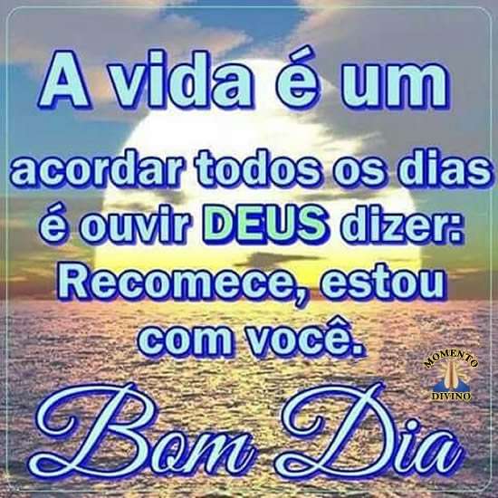 A vida é um acordar todos os dias e ouvir Deus dizer: Recomece, estou com você.