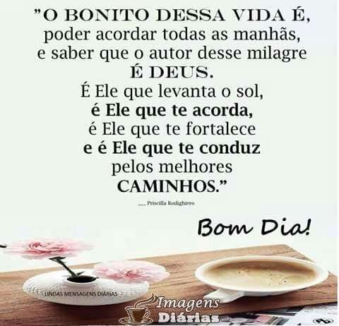 "O bonito dessa vida é, poder acordar todas as manhãs, e saber que o autor desse milagre É DEUS.
