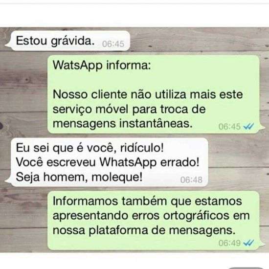 Eu sei que é você, ridículo! Você escreveu whatsApp errado!