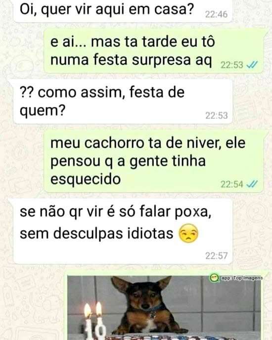 - Meu cachorro tá de niver, ele pensou que a gente tinha esquecido.