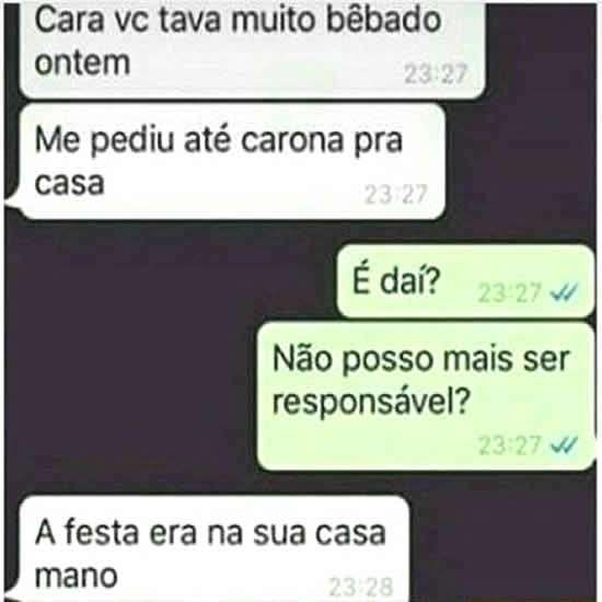 - Cara você estava muito bêbado ontem. Me pediu até carona pra casa.