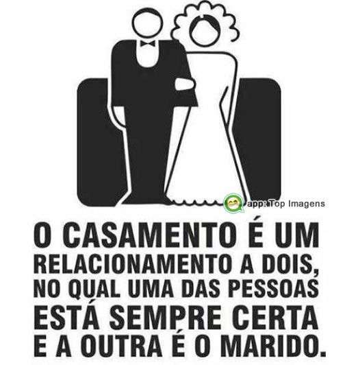 O casamento é um relacionamento a dois, no qual uma das pessoas está sempre certa e a outra é o marido.