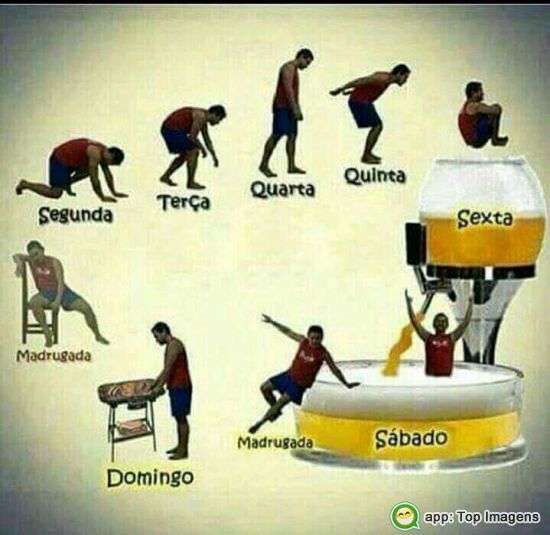 Minha vida resumida: segunda, terça, quarta, quinta, sexta, sábado, madrugada de sábado, domingo e madrugada de domingo.