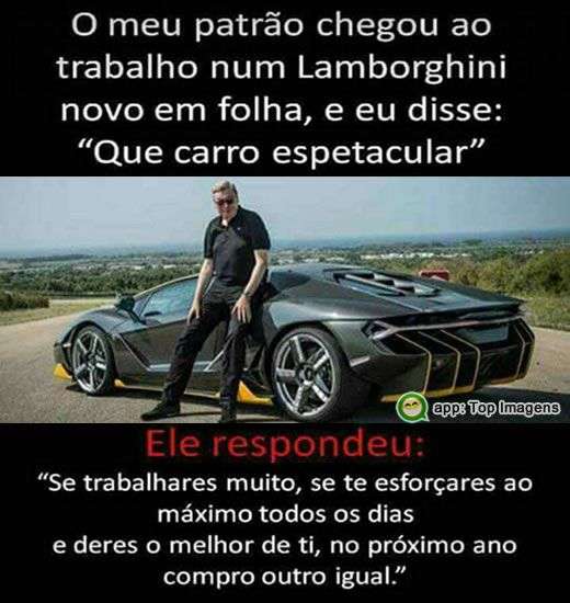 O meu patrão chegou ao trabalho num lamborghini novo em folha, e eu disse: