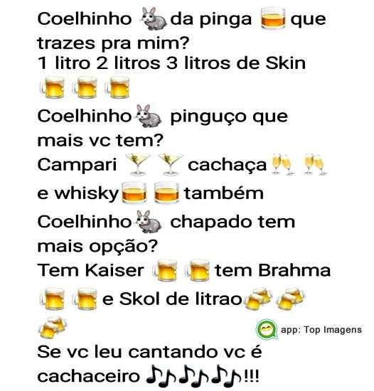 Coelhinho da pinga que trazes pra mim?