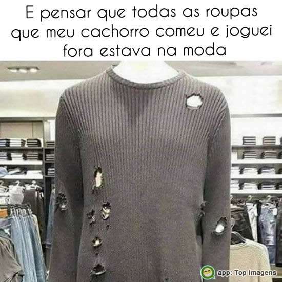 E pensar que todas as roupas que meu cachorro comeu e joguei fora estavam na moda.