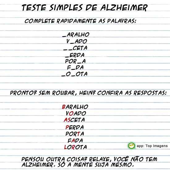 PENSOU OUTRA COISA? RELAXE, VOCÊ NÃO TEM ALZHEIMER, SÓ A MENTE SUJA MESMO.