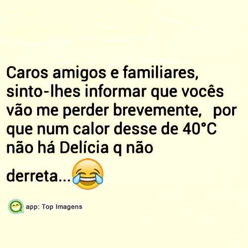 Caros amigos e familiares, sinto-lhes informar que vocês vão me perder brevemente, por que num calor desse de 40 ºC não há delícia q não derreta...