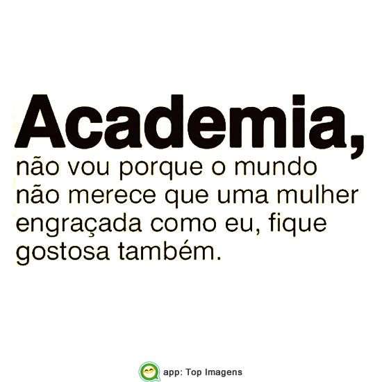 Academia, não vou porque o mundo não merece que uma mulher engraçada como eu, fique gostosa também.
