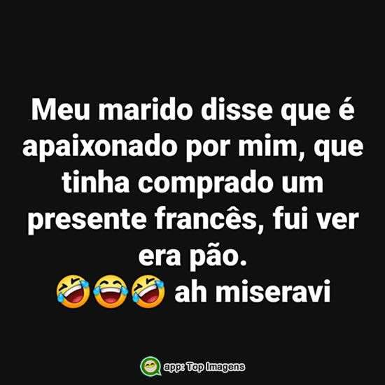 Meu marido disse que é apaixonado por mim, que tinha comprado um presente francês, fui ver era pão. ah miseravi