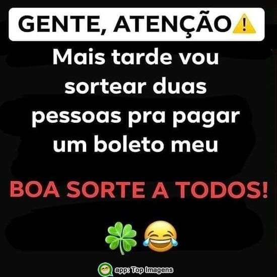 Mais tarde vou sortear duas pessoas pra pagar um boleto meu.