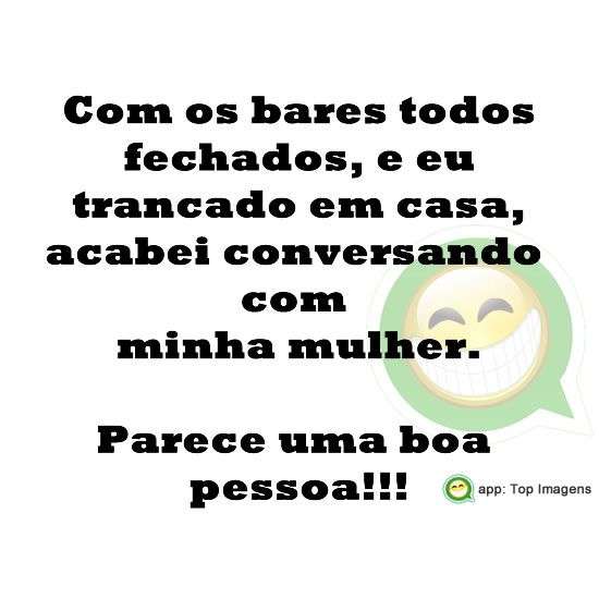 Com os bares todos fechados, e eu trancado em casa, acabei conversando com minha mulher. Parece uma boa pessoa!!!