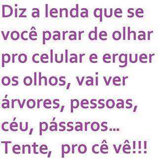 Diz a lenda que se você parar de olhar pro celular e erguer os olhos, vai ver árvores, pessoas, céu, pássaros... Tente, pro cê vê!!!