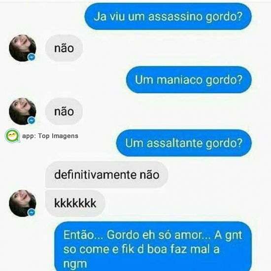 Então ...Gordo eh só amor... a gnt so come e fik d boa faz mal a ngm