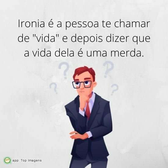 Ironia é a pessoa te chamar de "vida" e depois dizer que a vida dela é uma merda.