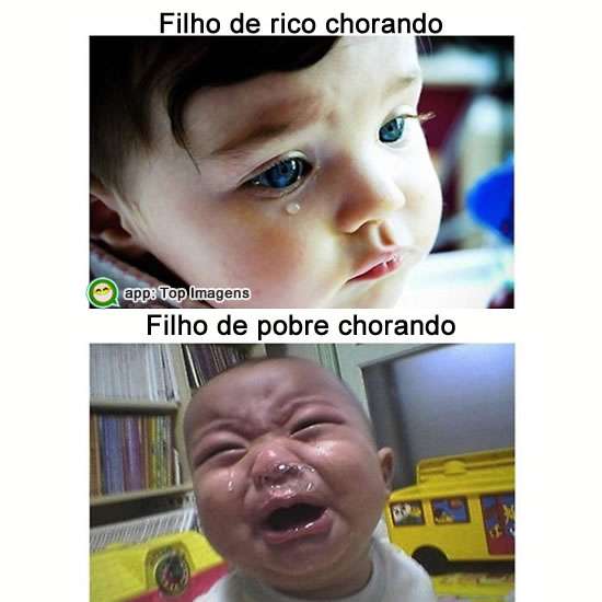 Filho de rico chorando versus filho de pobre chorando.