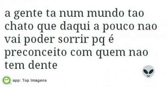 A gente ta num mundo tão chato que daqui a pouco não vai poder sorrir pq é preconceito com quem não tem dente