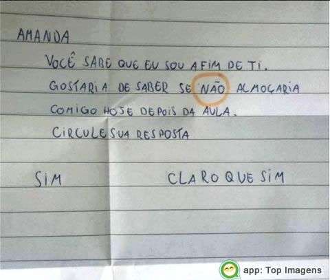Gostaria de saber se Não almoçaria comigo hoje depois da aula.