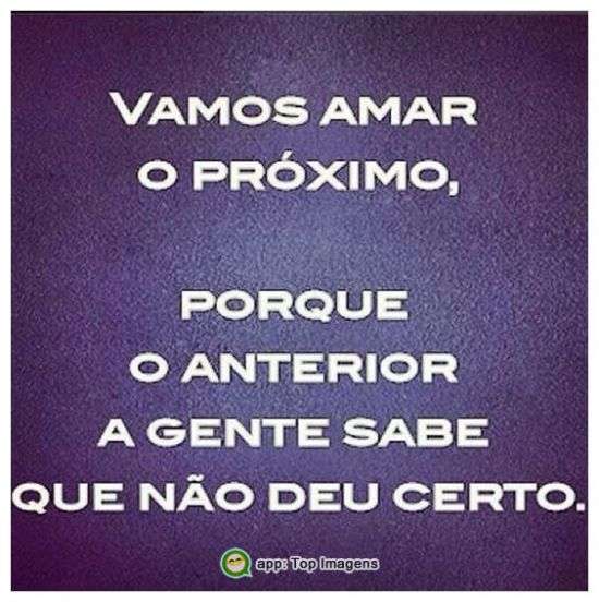 Vamos amar o próximo, porque o anterior a gente sabe que não deu certo.