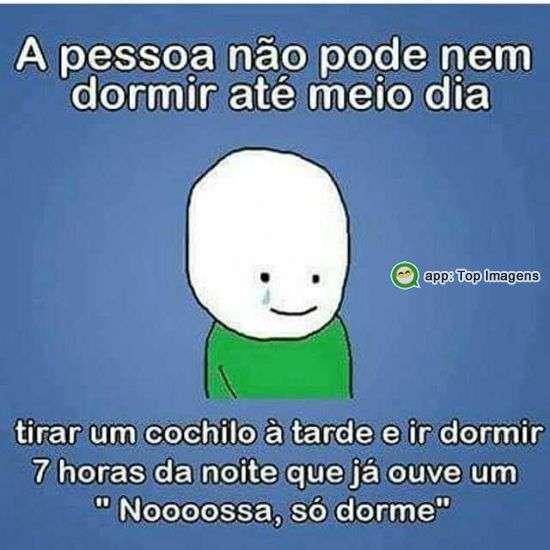 A pessoa não pode nem dormir até meio dia tirar um cochilo a tarde e ir dormir 7 horas da noite que já ouve um "Noooossa, só dorme"