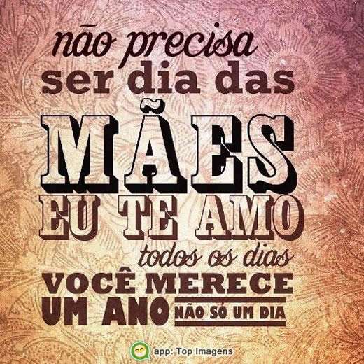 Não precisa ser dia das mães. Eu te amo todos os dias.